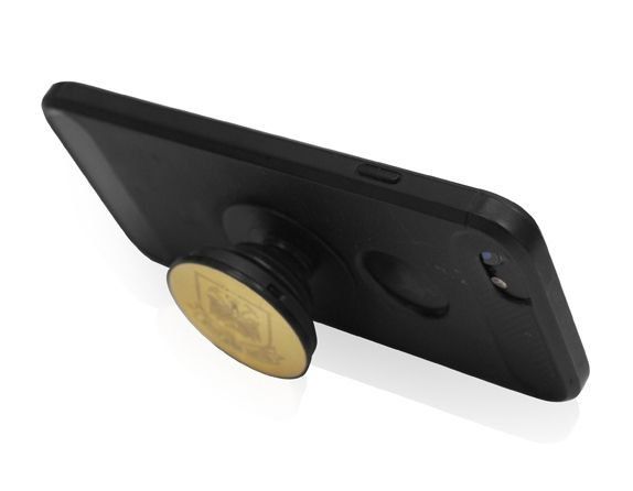 The phone hold-socket is an accessory that sticks to the back of a hand held electronic device, mostly commonly a mobile phone, tablet or e-reader. It resembles a round button and is collapsable. When expanded it enables you to grip your phone more securely for selfies and of course videos.